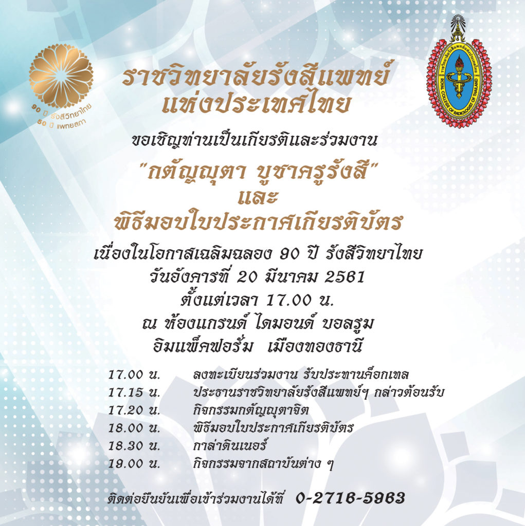ขอเชิญท่านเป็นเกียรติและร่วมงาน “กตัญญุตา บูชาครูรัง” วันอังคารที่ 20 มีนาคม 2561