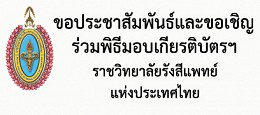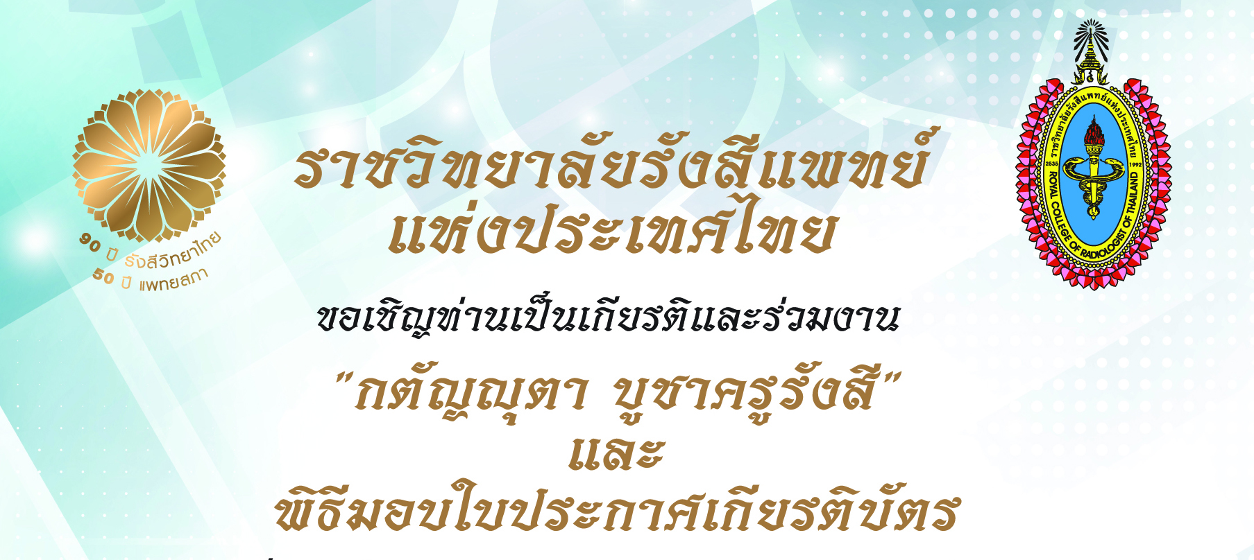 ขอประชาสัมพันธ์และขอเชิญร่วมพิธีมอบเกียรติบัตรฯ ของราชวิทยาลัยรังสีแพทย์แห่งประเทศไทย